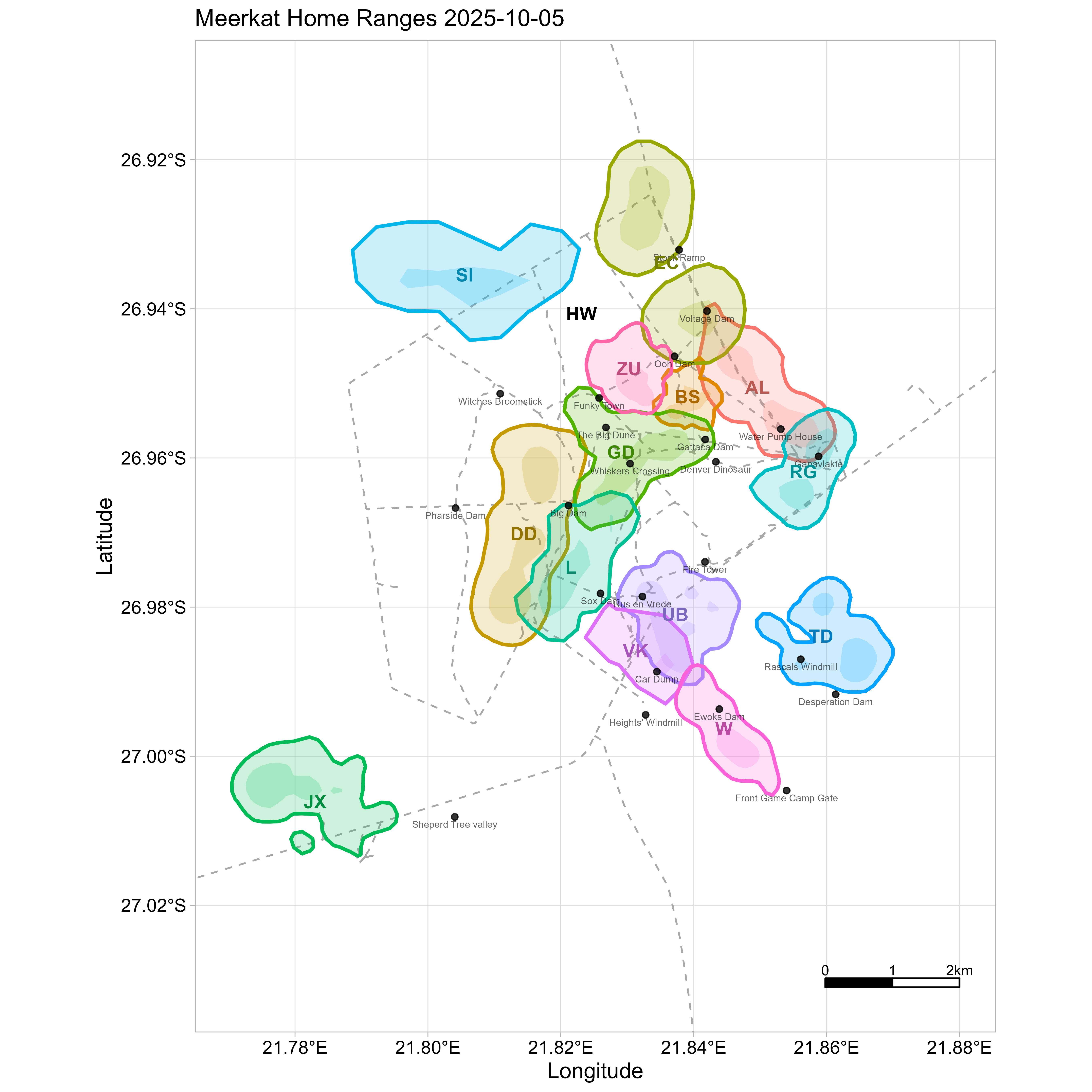 Female dominance at Trackie-Daks was confirmed. Yearling Refilwe (VTDF041) is the group’s new dominant female. She gave birth this month, but her litter has yet to emerge by the end of the month. Habituation is now complete at Trackie-Daks as dominant male Guido (VWM275) consistently drinks from the water bottle, can be weighed and allows close follows by the observers.